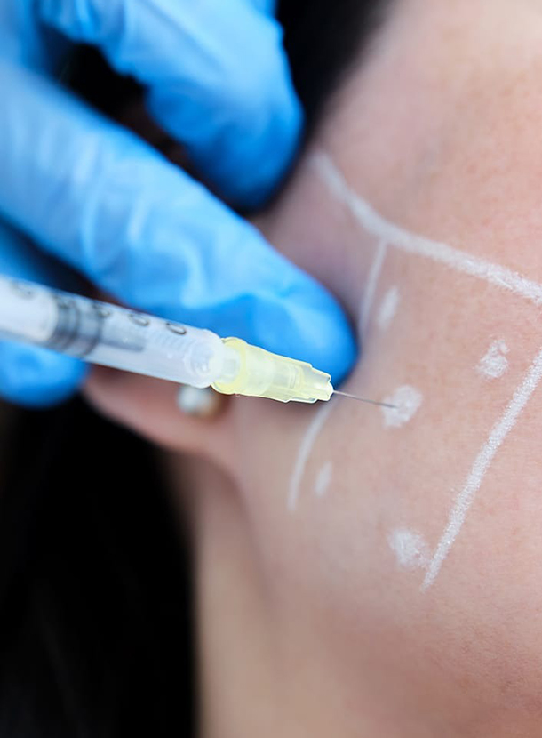 Consiste en la infiltración de neuromoduladores directamente en el músculo masetero, uno de los principales responsables del bruxismo. Esta aplicación relaja la musculatura de forma controlada, reduciendo la fuerza excesiva con la que se aprietan los dientes, sin afectar la masticación ni la expresión facial.